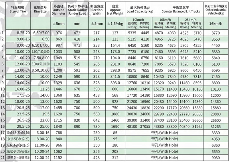 采用國家標準輪輞,可以與充氣午夜在线免费观看视频互換。與充氣胎相比,耐磨、使用壽命長、滾動阻力小、能耗低、耐刺破、安全,有更高的性能價格比,在低速、高負荷運行車輛領域中,是充氣胎的換代產品。