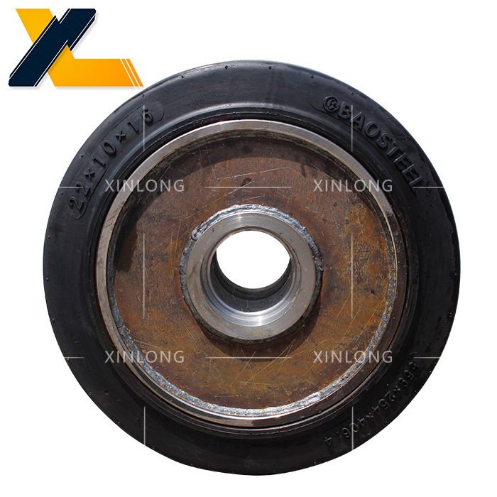 將堆高機實心輪臉麵,然後將堆高機內輪全吊起,將螺孔對準個螺栓,放下內輪銅並檢查內輪銅已放貼實,裝入螺母到栓頭部,然後用8-10公斤風炮機或氣動衝擊扳,手預擰緊到硬接觸;使用810公斤風炮機或扭矩扳手順時針、交錯、對稱分多次次擰緊輪轂母,直至全部達到力矩標準